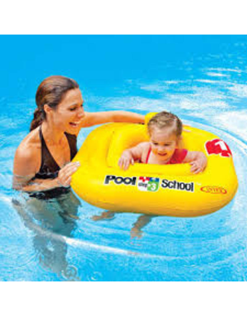 Uitgevoerd met zitje met beendoorvoer en rugleuning. Stabiele baby zwemband van hoge kwaliteit.